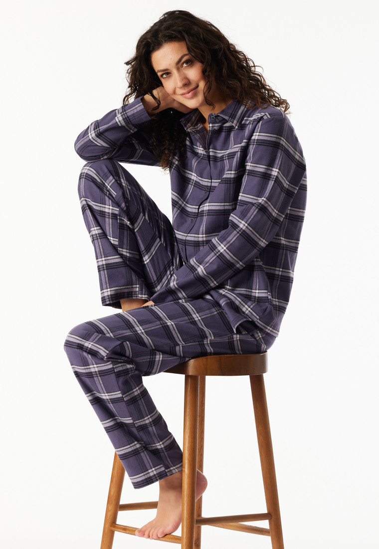 Pyjama lang Flanell indigo kariert - Selected Premium Warming
