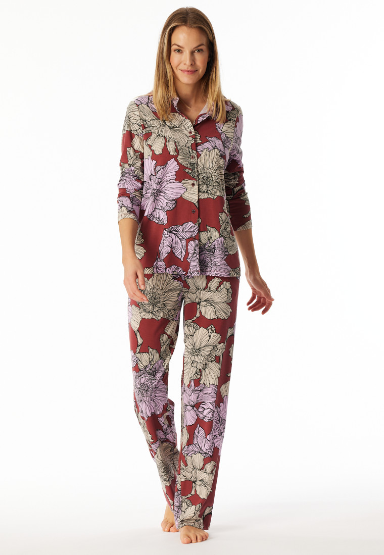 Pyjama lang Jersey Aloe Vera Blumen dunkelrot - Selected Premium