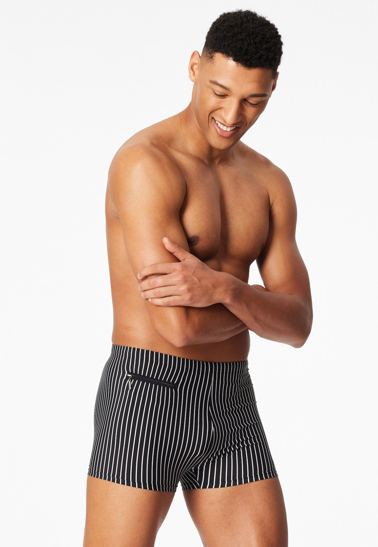Slip de bain avec jambe poche zippée noir rayé - Aqua