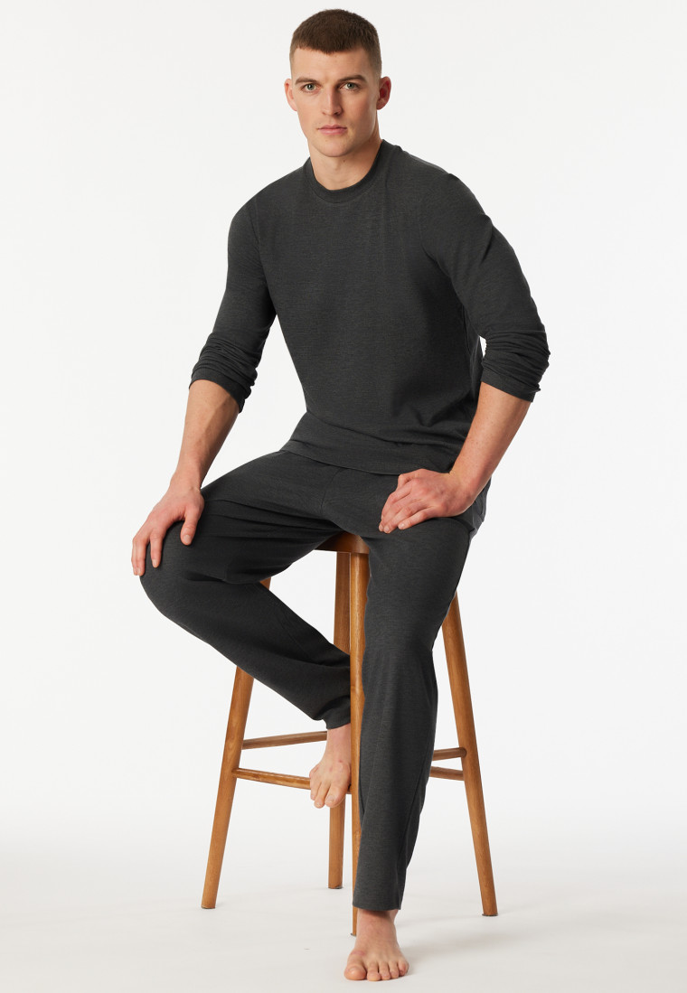 Schlafanzug lang Interlock dunkelgrau-meliert - Selected Premium Warming
