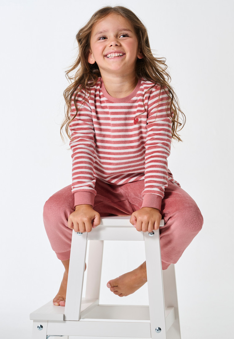 Pigiama lungo in velluto con cuore a righe rosa antico - Nightwear per bambini