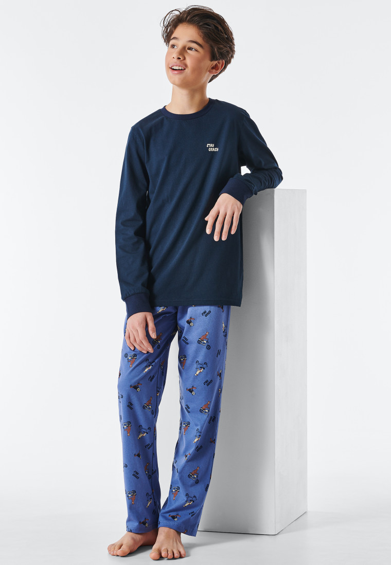 In diesem langen Jungen-Schlafanzug sind coole Träume angesagt. Softer Single Jersey aus 100 % Organic Cotton ist perfekt, um sich nach einem spannenden Tag gemütlich ins Bett zu kuscheln. Das schlichte Langarmshirt in Dunkelblau mit "STAY CRAZY"-Schriftzug und praktischen Bündchen bekommt mit der indigofarbenen Schlafhose ein tolles Highlight. Denn: Die gemusterte Pants macht mit den witzigen Hunde-Motiven richtig gute Laune. Ein echtes Lieblingsstück in bester SCHIESSER-Qualität!